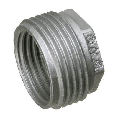 The Arlington 535 is a hex head reducing bushing designed for use with rigid and IMC conduits. It is made of die-cast zinc, offering durability and reliability in various electrical installations.