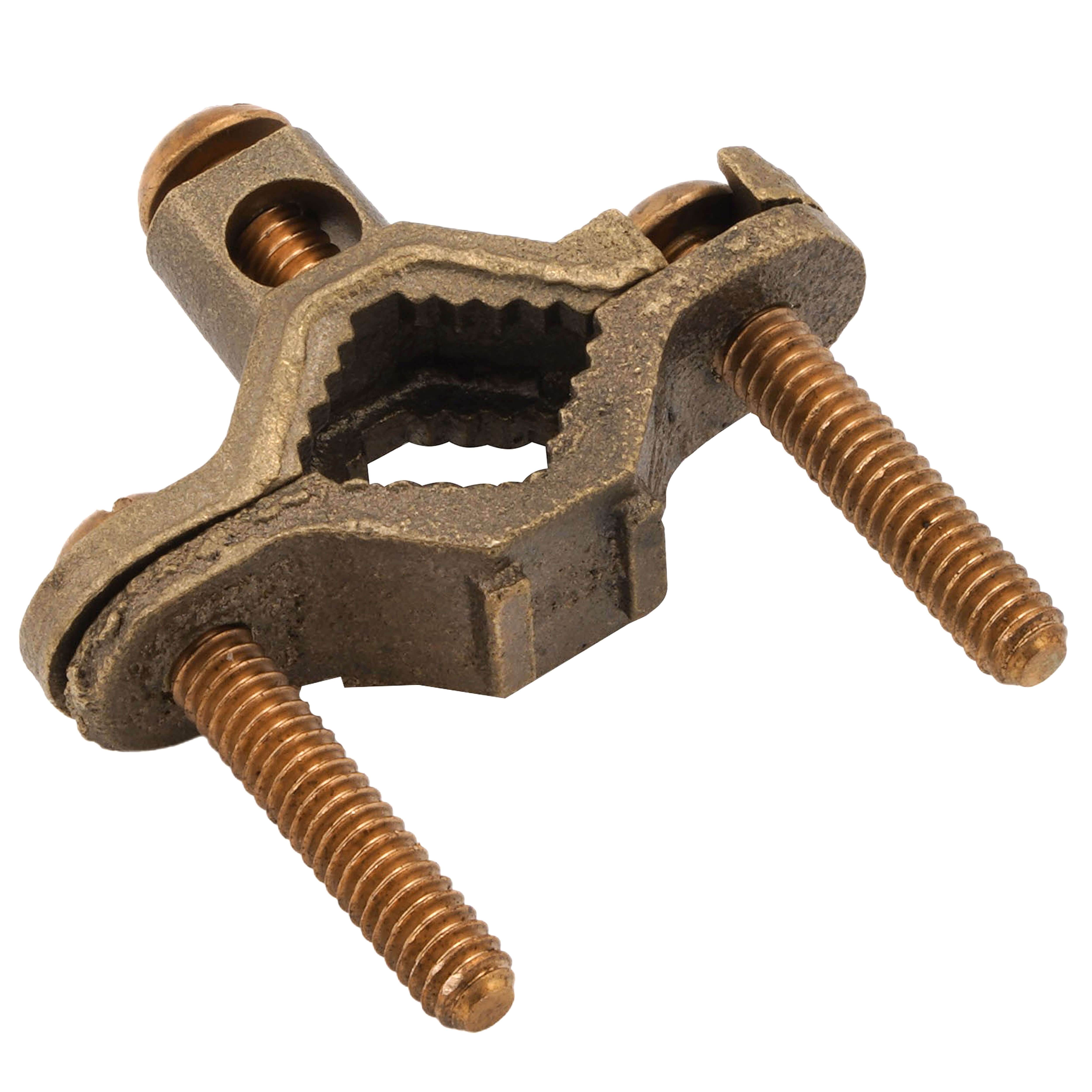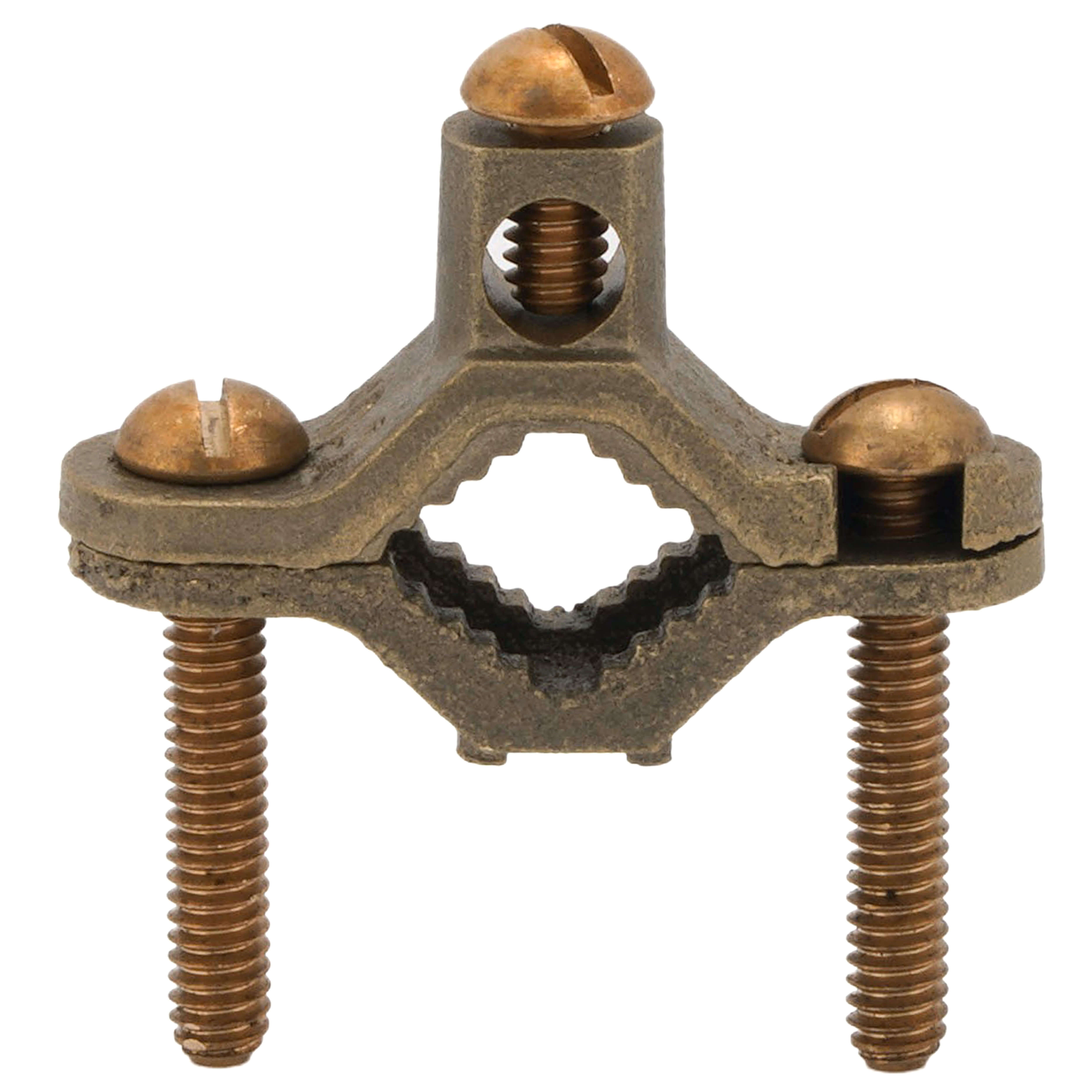 The Arlington 720DB is a solid bronze bare wire ground clamp designed for use with pipes of half to one inch. This clamp accommodates conductor sizes ranging from ten to two AWG. It is suitable for direct burial applications, ensuring strong connections in various settings.