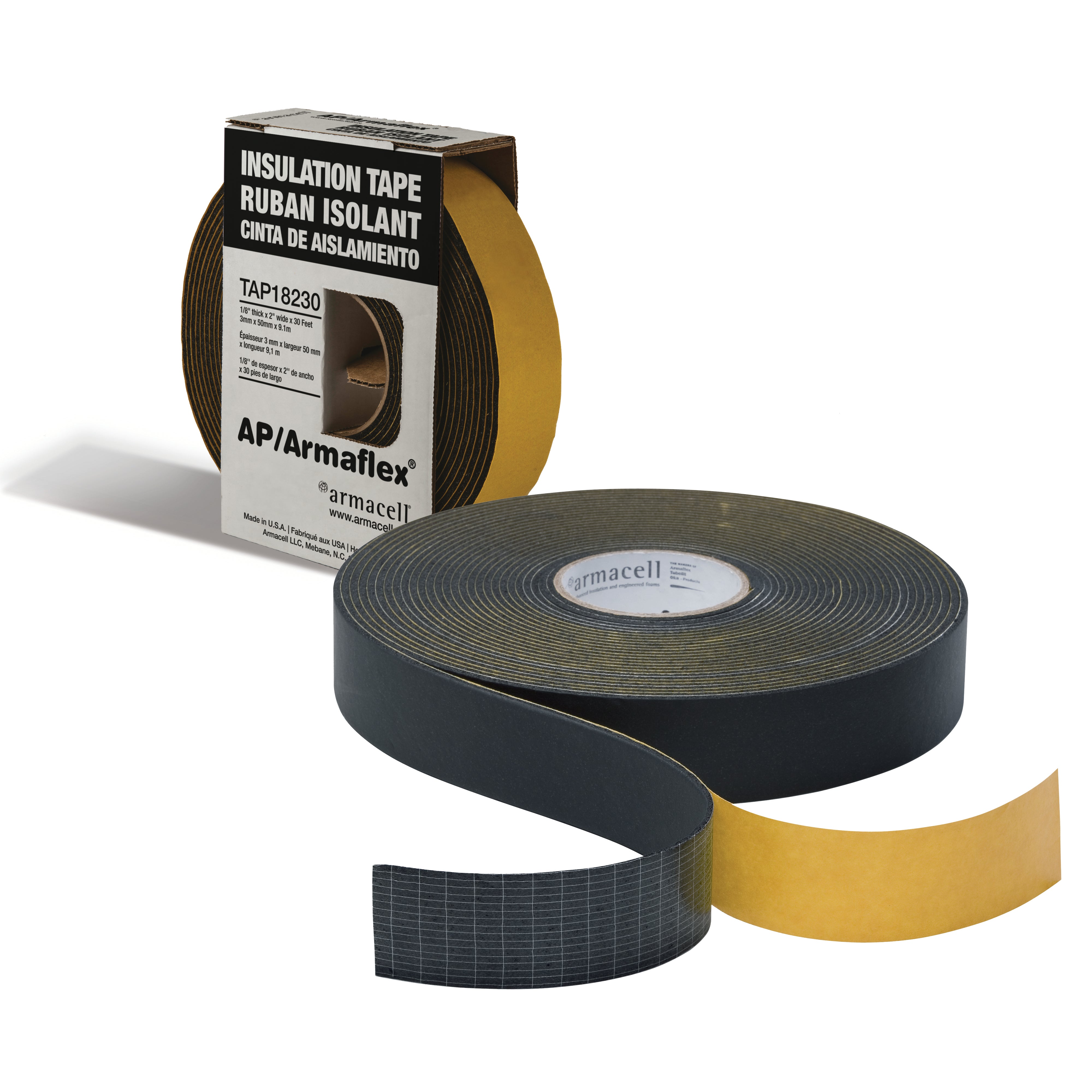 The Armacell TAP18230 insulation tape dispenser is designed for insulation applications. This product ensures effective insulation for hot and cold piping systems. With a length of thirty feet and a width of two inches, this product is suitable for various insulation needs.