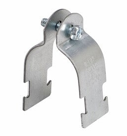 The Atkore S60700SC00 Cal Pipe 3/4 Strut Clamp is designed to provide secure support for conduit installations. This clamp fits standard three-quarter inch conduit and is made from type 316 stainless steel for durability. It can support loads up to six hundred pounds, making it suitable for various applications.