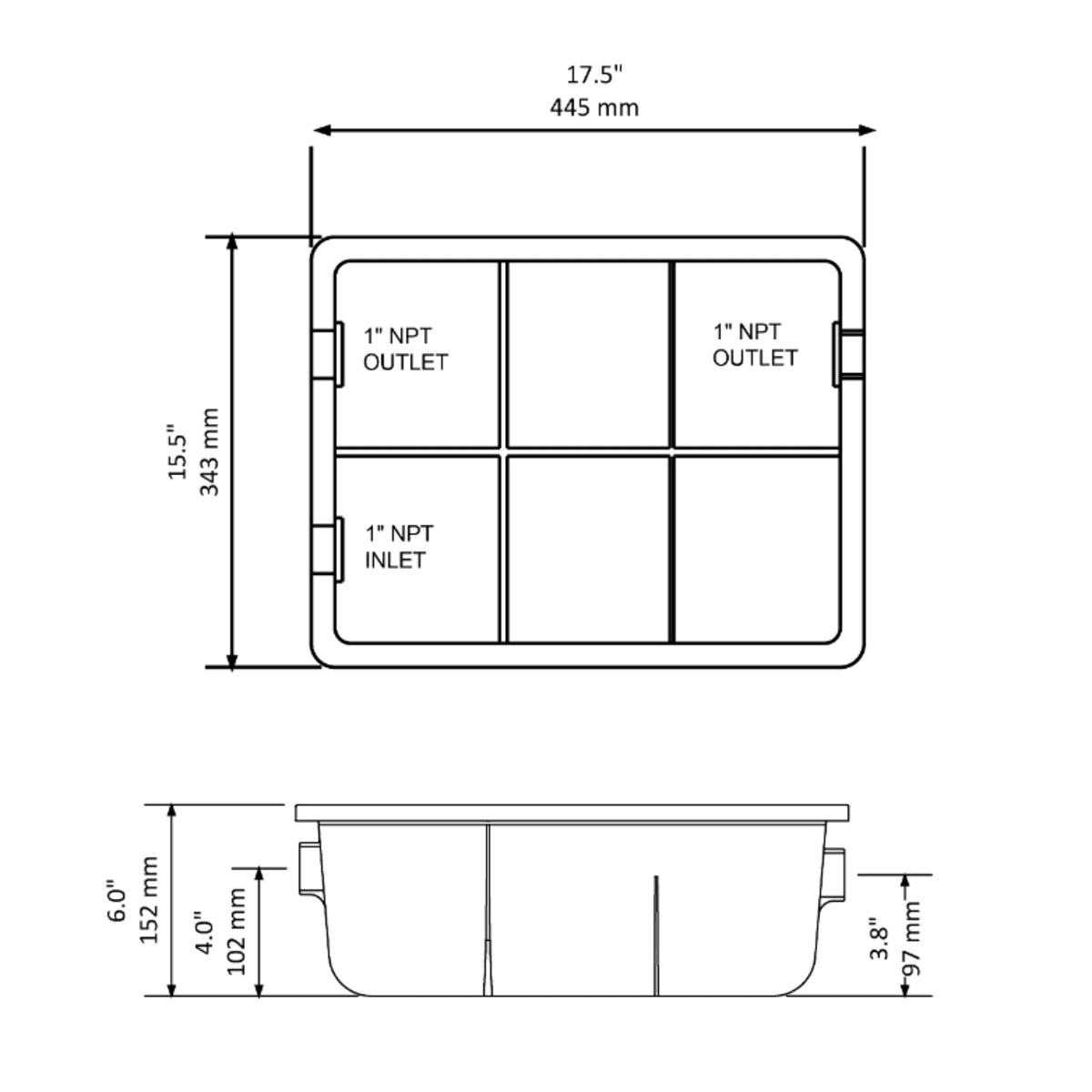 This neutralization tank features dual piping configurations for efficient installation and a low profile ideal for use with floor-level condensate drains.