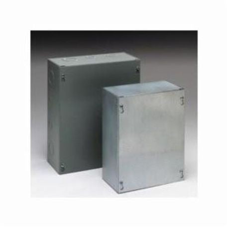 The B-Line Junction Box with MPN 18184SCNK is a Type-1 junction box designed for commercial applications. It is made from carbon steel and features dimensions of eighteen inches in height, eighteen inches in width, and four inches in depth. This unit provides essential protection for wiring, making it suitable for residential and commercial structures. The junction box is a surface-mounted model with a screw cover, ensuring secure access to internal components.