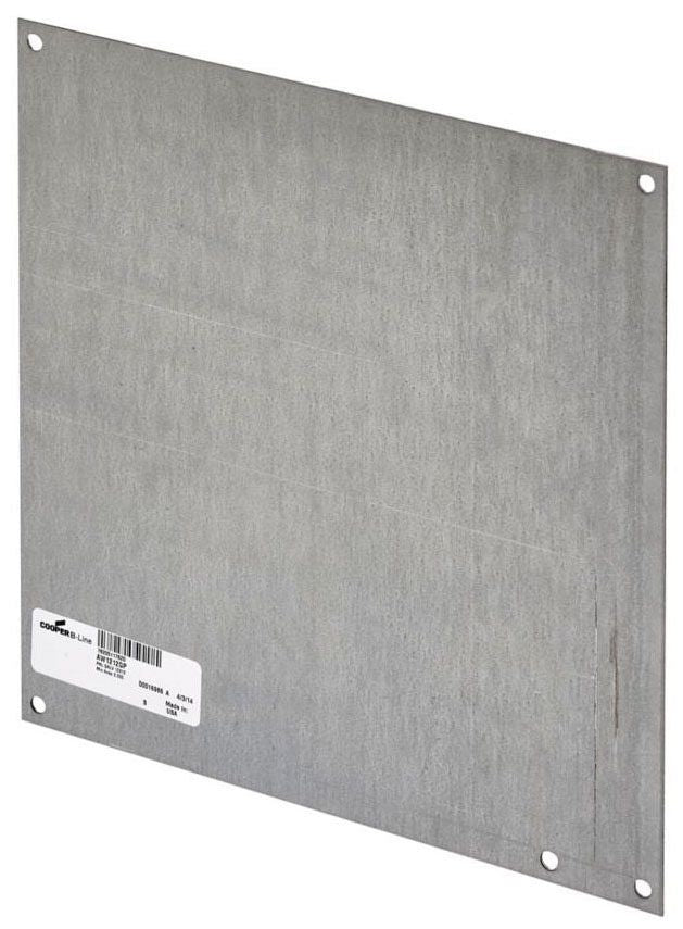The B-Line AW108P is a mounting panel designed for use with NEMA 12 enclosures. Made from galvanized steel, this robust panel measures six point eight seven inches in width and eight point eight seven inches in height. It provides a reliable surface for various electrical components and fits well into JIC enclosures.