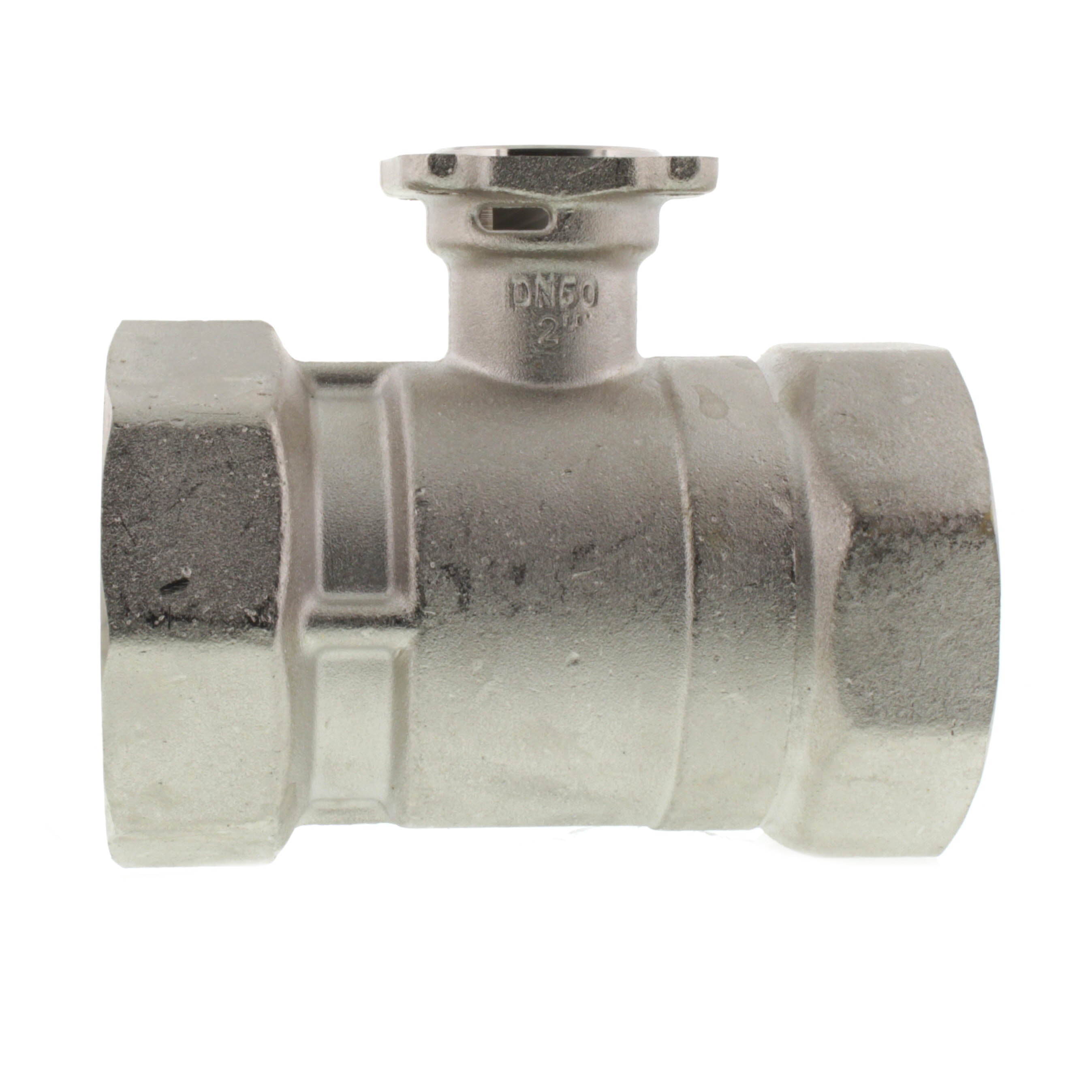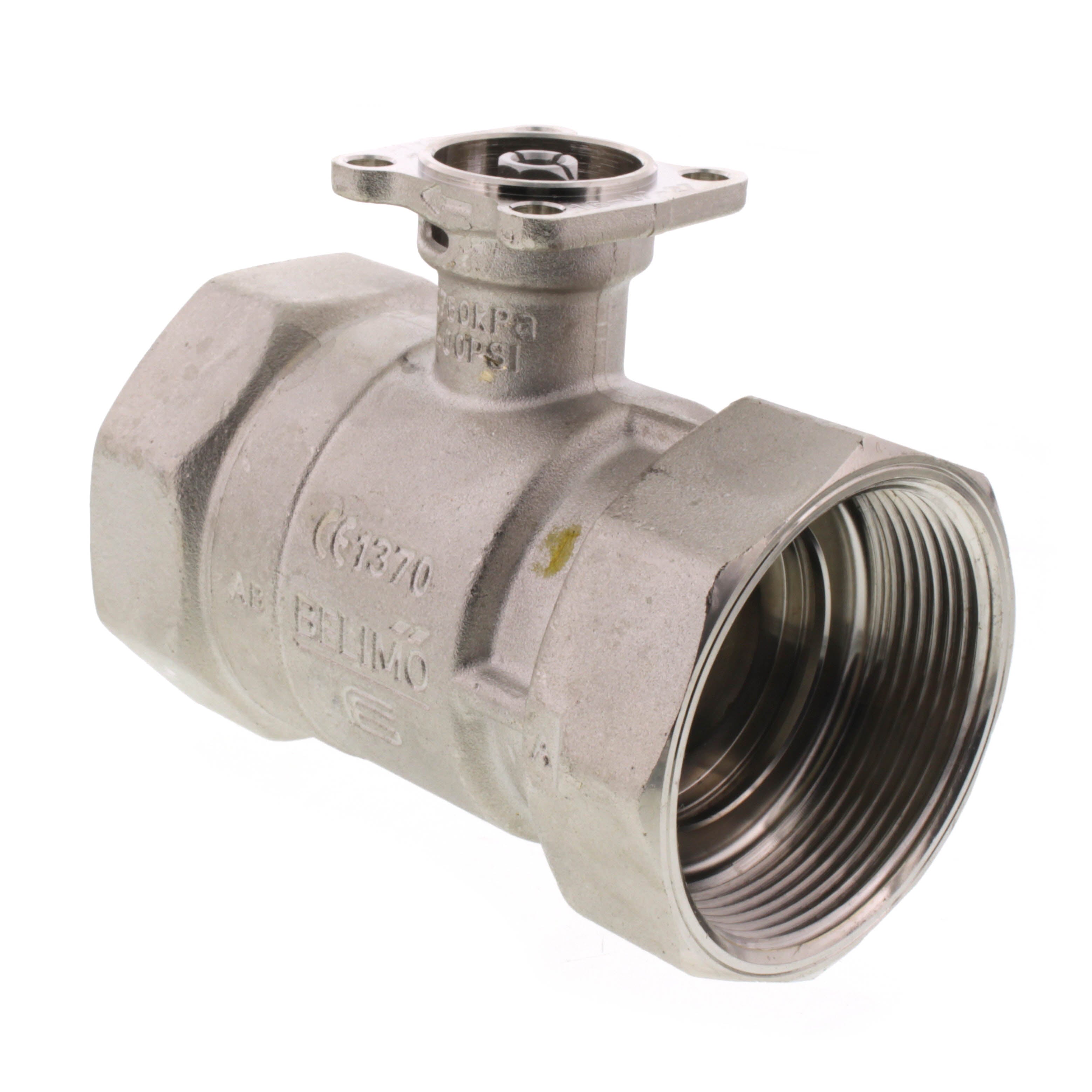 The Belimo B250 is a two-way characterized control valve designed for HVAC applications, specifically for chilled or hot water systems. It has a flow capacity of fifty-seven Cv and features a female threaded connection size of two inches NPT. The body of the valve is made of nickel plated forged brass while the internal components consist of stainless steel for durability. This valve is used often in air handling units and fan coil units, ensuring optimal performance in variable flow hydronic systems.