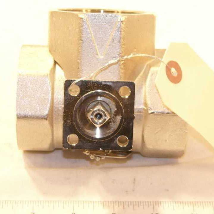 The Belimo B348 is a three-way characterized control valve designed for HVAC systems. It features a two-inch NPT connection and a flow coefficient of thirty-seven cubic feet per minute. This valve is suitable for both chilled and hot water applications with up to sixty percent glycol. Its forged brass construction ensures durability in high-pressure environments.
