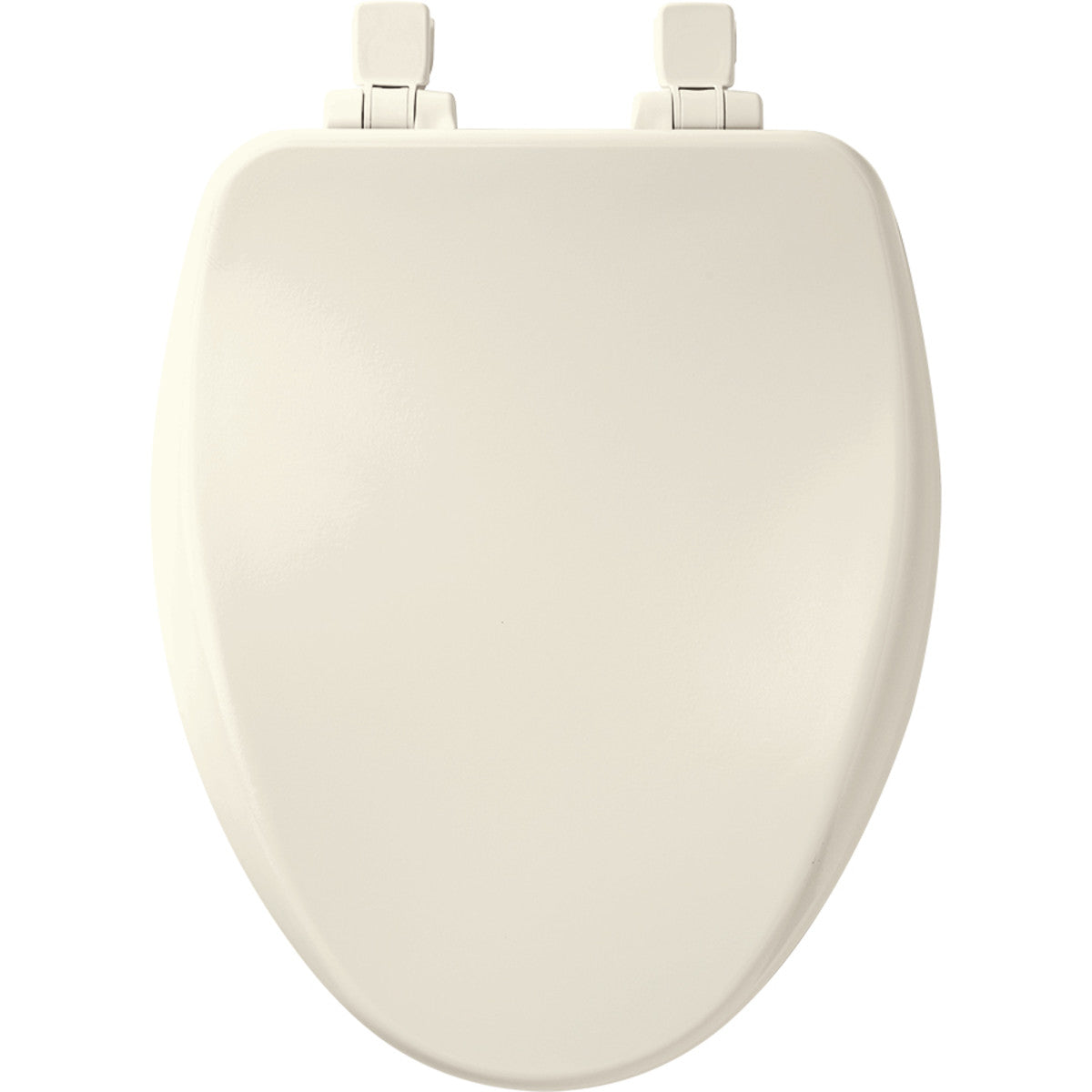 This Bemis 19170PLE4346 Alesio II elongated toilet seat is made of high density enameled wood. It enhances any bathroom decor with a clean look while providing strong stability. The slow-close feature helps prevent noise and accidents.