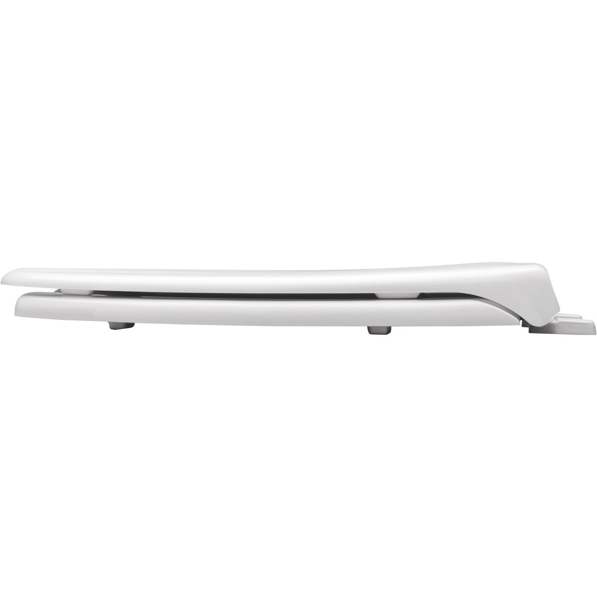 This toilet seat fits most elongated toilet bowls and is ideal for both residential and commercial settings.