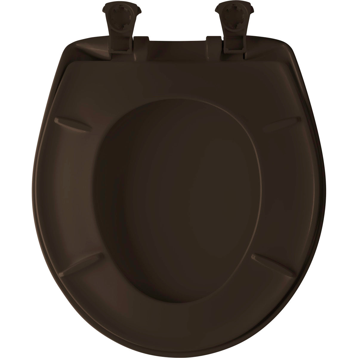 The Bemis 200SLOWT 248 is a round plastic toilet seat made in the USA. It features a rich espresso brown color, designed for comfort and ease of use. The STA-TITE Seat Fastening System securely holds the seat in place to prevent shifting.