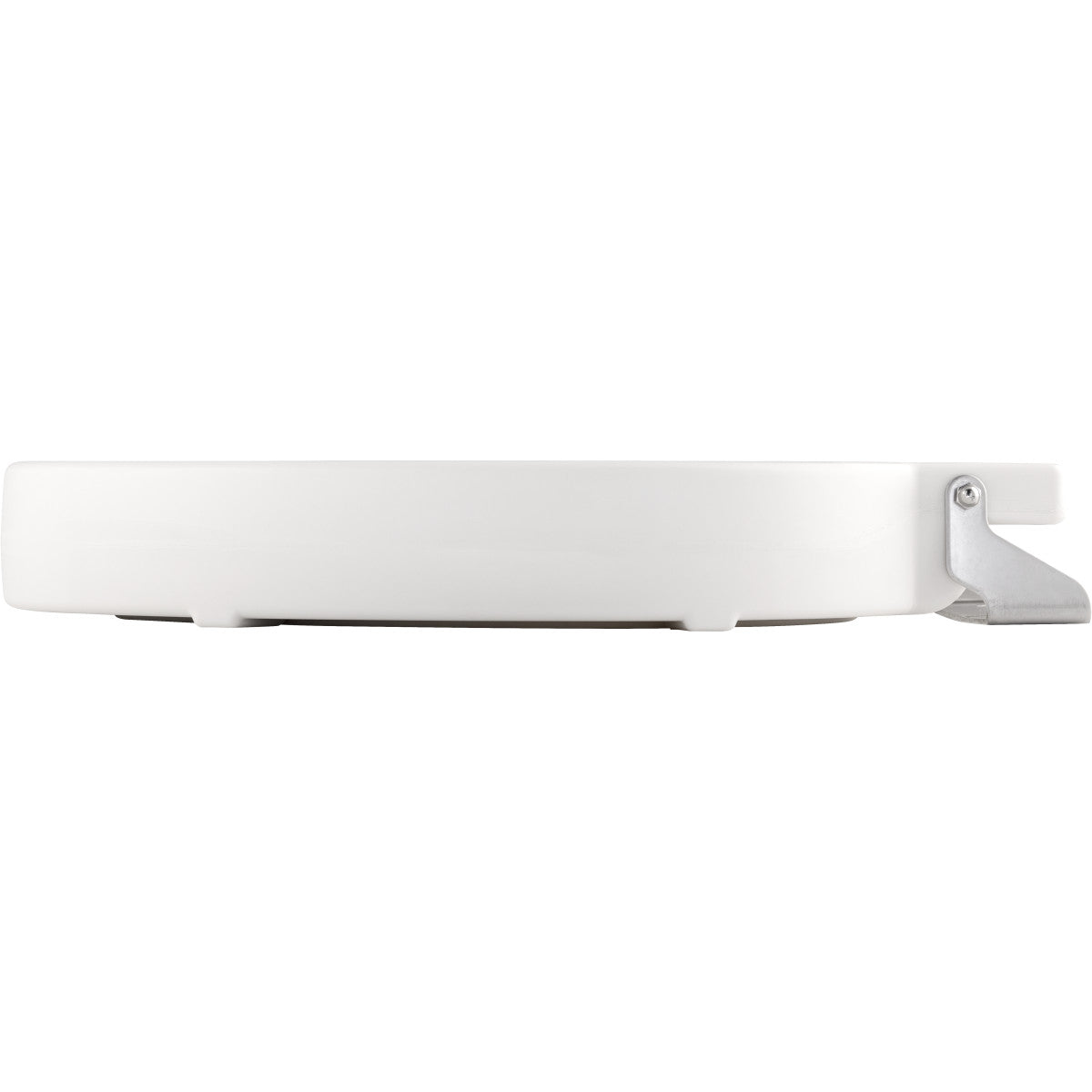 The Bemis 4LET 000 is an elongated plastic lift spacer designed for medic-aid applications. It features the STA-TITE Commercial Fastening System that ensures a secure fit and eliminates the risk of loosening over time. This spacer creates additional height above the toilet bowl rim, making it suitable for users with special physical needs. It is made from durable plastic that resists chips, stains, and wears, ensuring longevity in use.