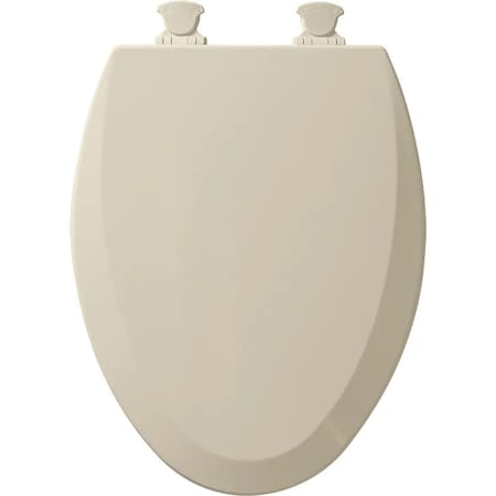The Bemis 7B1500EC146 Elongated Closed Front Toilet Seat is made from enameled wood and comes in an almond color. It features non-corrosive bolts and wing nuts for secure installation.