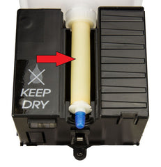 The Bobrick 2012-18-S is a cylindrical valve assembly that includes a silicone tube. This replacement part is specifically designed for use with the Bobrick B-2012 automatic wall-mounted soap dispenser, ensuring proper functionality of the dispenser's cylindrical valve system.