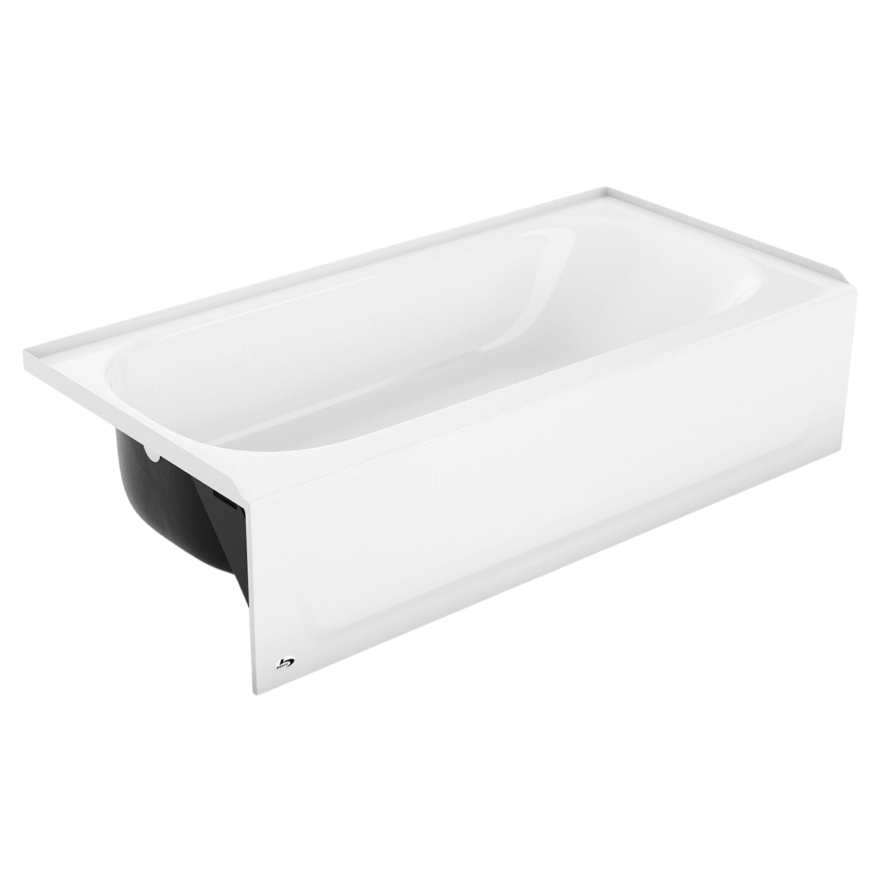 The Bootz Industries 011-3365-00 Aloha Bathtub measures 60 inches long, 30 inches wide, and 14-1/4 inches deep. It features a left hand drain setup. This bathtub is made from porcelain enameled steel. It fits in alcove installations and supports a soaking bath therapy type.
