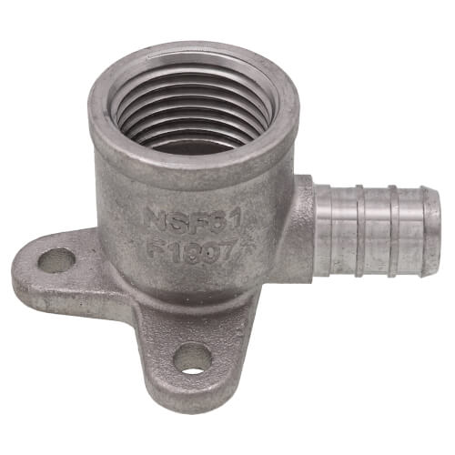Boshart's SSPEX-DE05 is a stainless steel drop ear elbow designed for PEX applications. This fitting connects 1/2 PEX to 1/2 NPT with a 90-degree angle, making it suitable for various plumbing systems. Its construction from 304 stainless steel provides durability and resistance to rust and corrosion.
