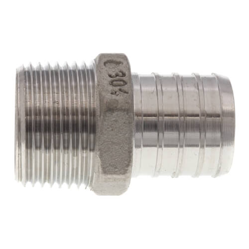 Boshart SSPEX-MA1007 is a stainless steel PEX crimp male adapter designed for various plumbing applications. This adapter accommodates a 1 PEX size and features a three-quarter inch NPT male thread fitting. The stainless steel construction offers excellent corrosion resistance, making it suitable for environments with poor water quality.