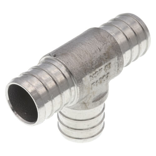 Boshart SSPEX-T07 is a three-quarter inch stainless steel PEX tee fitting designed for various PEX applications. This fitting features lead-free construction, ensuring compliance with safety standards. The stainless steel material enhances durability and provides high corrosion resistance, making it suitable for hot and cold water distribution systems in diverse environments.
