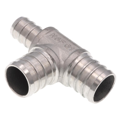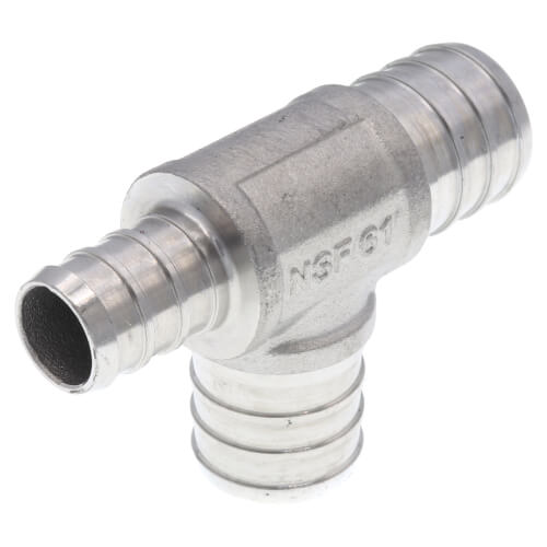 Boshart SSPEX-T070507 is a stainless steel PEX crimp tee suitable for various PEX applications. This fitting provides a reliable connection for PEX pipe systems. Made from lead-free stainless steel, it is suitable for cold and hot water distribution systems.