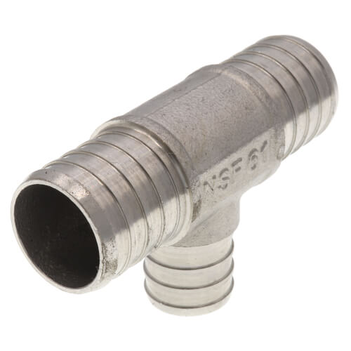 Boshart's Stainless Steel PEX Crimp Tee, MPN SSPEX-T101007, is designed for use in various PEX applications. It is suitable for both hot and cold water distribution systems, ensuring reliability in various environments.