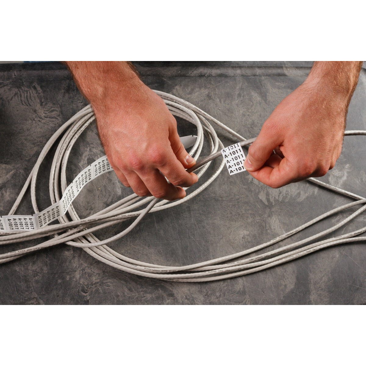 The Brady X-18-498 is a repositionable vinyl cloth label with dimensions of one inch by three-quarters of an inch. It is designed for wire and cable marking in various applications.