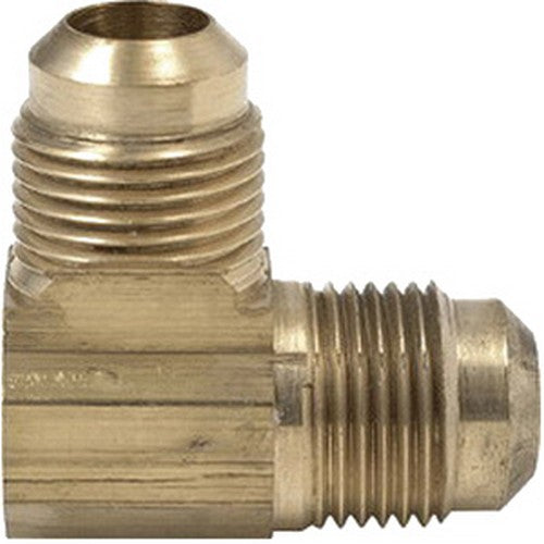 The BrassCraft 55-8 is a 1/2 inch OD x flare brass elbow fitting designed for various plumbing applications. This product works well with aluminum, copper, brass, and welded steel tubing that can be flared. It is not suitable for potable water applications. The elbow is built to resist mechanical pullout, making it reliable for high-pressure situations. Ideal for use in fuel, oil, and natural gas lines, this fitting meets the demands of heating and industrial markets.