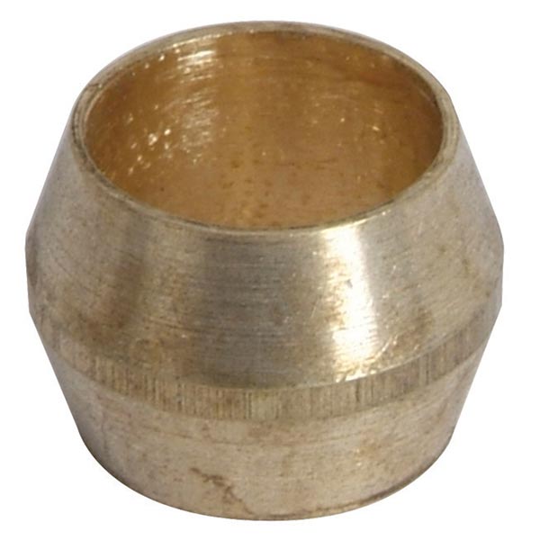 BrassCraft 60-10 compression sleeve is made from brass and designed for various plumbing and hydraulic applications. This fitting works with tubing that is five eighths inches in outer diameter, and it is rated for pressures up to 150 psi. The compression sleeve is suitable for use with aluminum, copper, and plastic tubing but is not recommended for steel tubing.