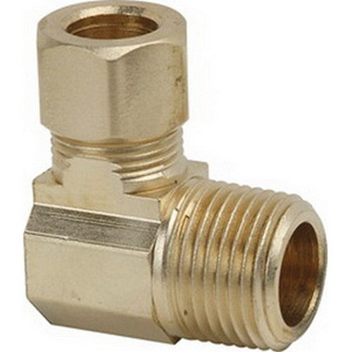 The BrassCraft 69-4-4X is a brass elbow fitting designed for plumbing applications. It connects a quarter inch OD tube to a quarter inch female iron pipe (MIP). This elbow is ideal for use in both potable and non-potable water systems as well as instrumentation and pneumatic applications.