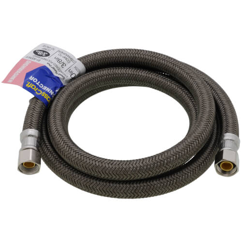 The BrassCraft B1-60DWF is a flexible water connector designed for dishwashers. It measures three-eighths by sixty inches and features a braided polymer construction for durability. This connector provides a reliable link between the dishwasher and the water supply.