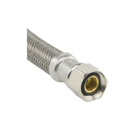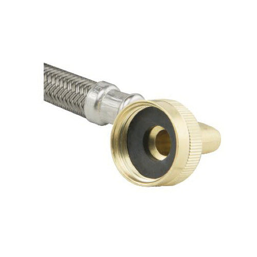 The BrassCraft B1-72DW612 B is a flexible braided water dishwasher connector. This connector features a three-fourth inch garden hose elbow and a three-eighths inch compression fitting. The length of the connector is seventy-two inches, designed to handle a maximum working pressure of one hundred twenty-five psi.