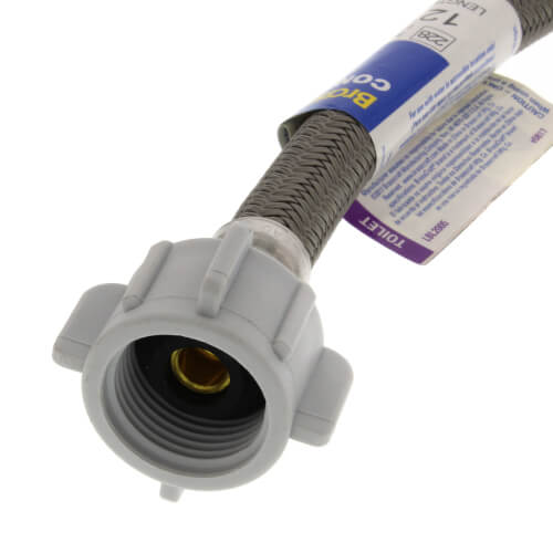 Brasscraft B3-12DLF is a twelve inch polymer coated braided toilet adapter for connecting water supply lines. The connection is made from one half inch compression and seven eighths inch ballcock. This product is designed for use in toilet applications.