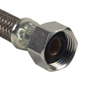 BrassCraft B812AF features a one-half inch Female Iron Pipe inlet and a one-half inch Female Iron Pipe outlet. This flexible braided PVC sink connector is designed for potable water applications. Its braided polymer construction minimizes risks of kinking or crimping, improving installation in tight spaces.