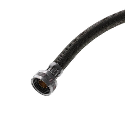 This braided hose connector features superior corrosion resistance to common household cleaning and plumbing repair products. More flexible than stainless steel, the braided polymer-coated fibers bend freely without kinking or crimping.