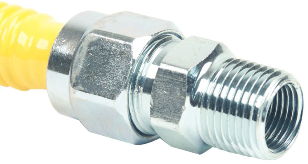 This gas appliance connector provides superior corrosion resistance and is suitable for indoor and outdoor use.