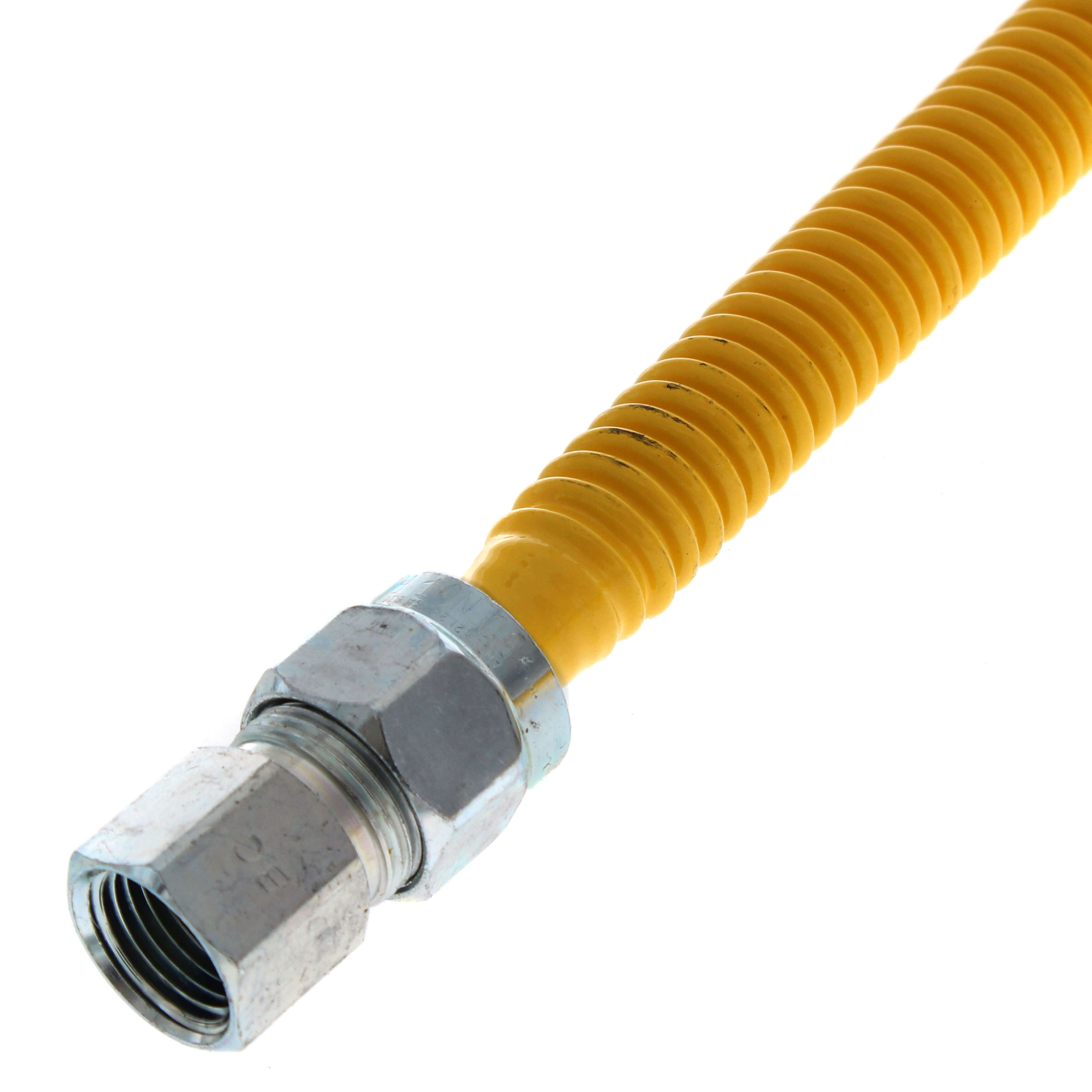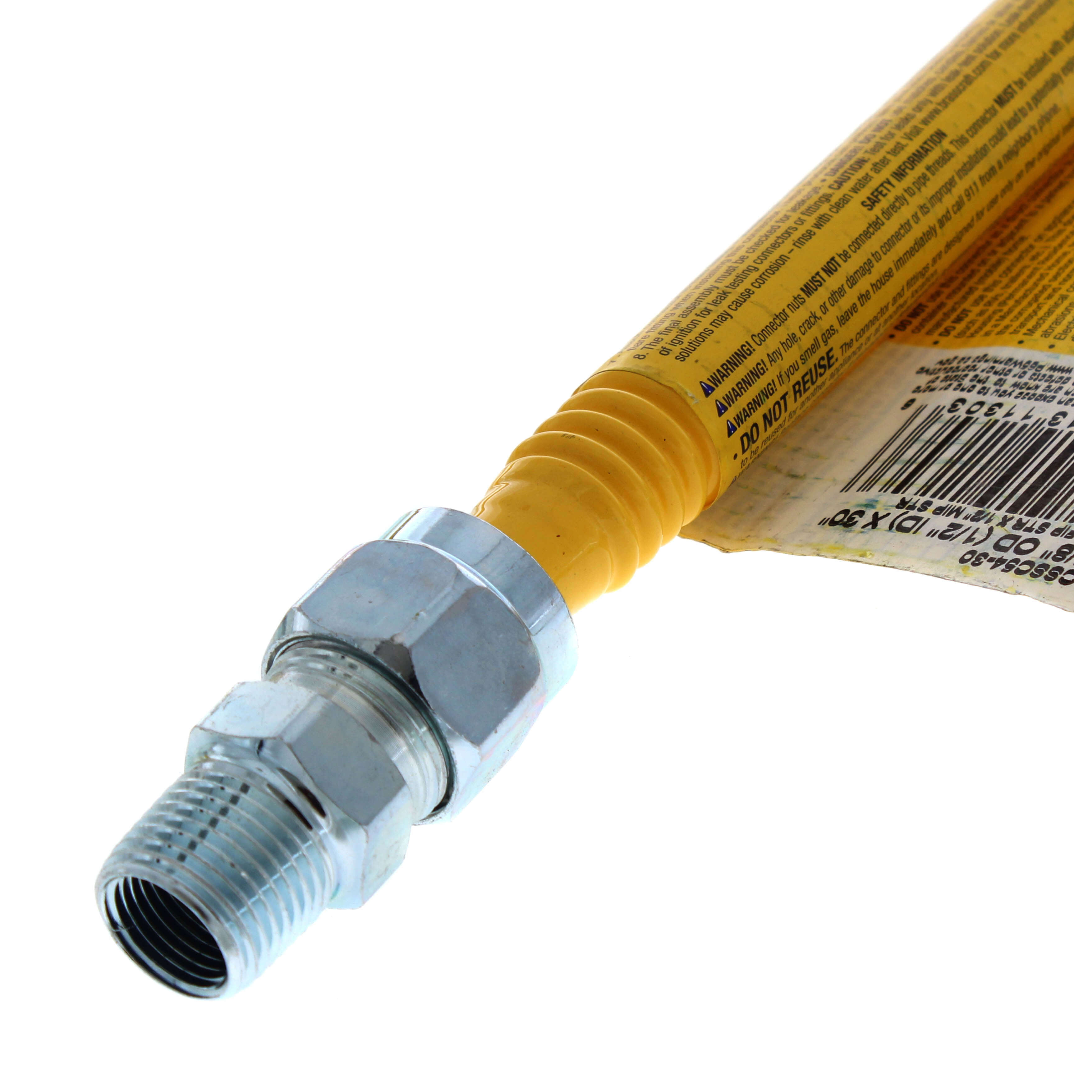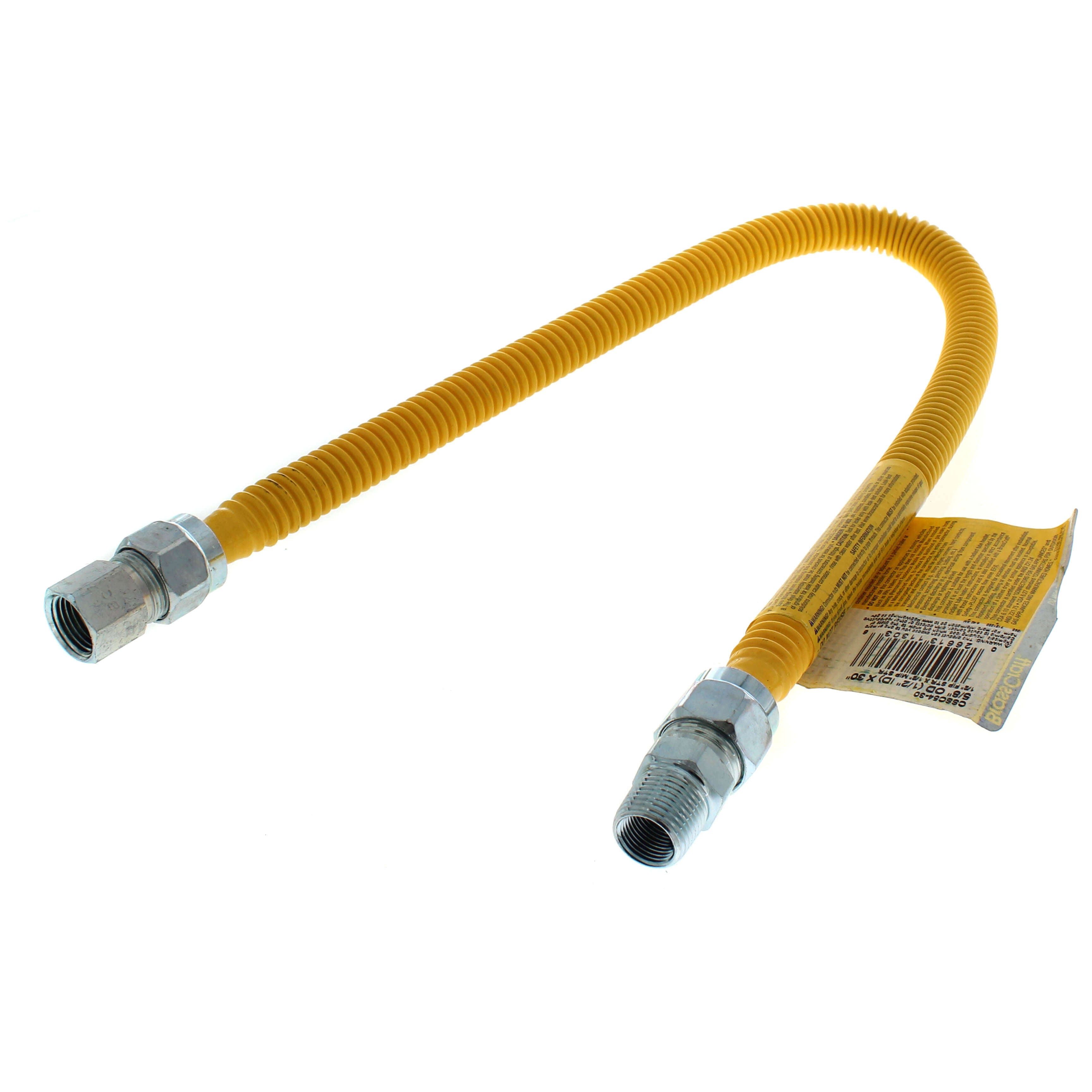 The BrassCraft CSSC54-30 is a stainless steel gas connector designed for safe and efficient gas supply connections. This connector has a nominal size of one-half inch FIP by one-half inch MIP and a length of thirty inches. The product features a polymer blend coating, providing extra protection against corrosion and harsh environmental conditions.