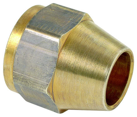 The BrassCraft F0-6 Tube Nut is designed for use with 3/8 inch OD tubing. This flare nut is constructed from durable brass, making it suitable for various applications including fuel, oil, liquefied petroleum, and natural gas lines.