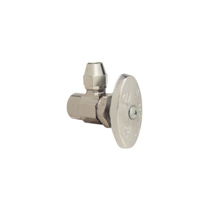 The BrassCraft FR19XR Multi-Turn Water Stop Angle Valve is designed to control water flow to various household plumbing fixtures including faucets, toilets, dishwashers, and washing machines. This product features a 1/2 inch nominal sweat inlet and a 3/8 inch OD flare outlet, making it suitable for many plumbing scenarios.