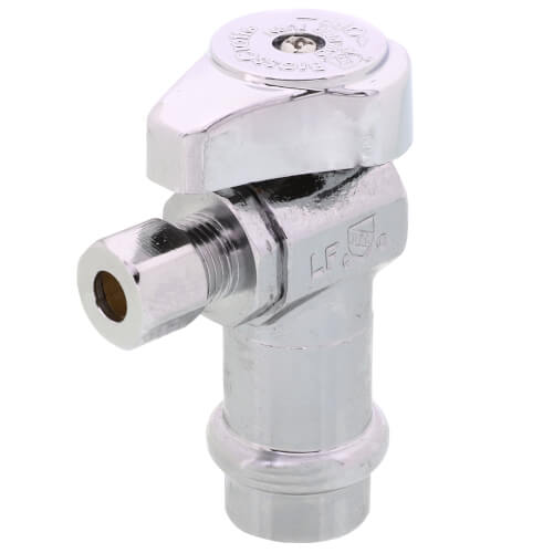 The BrassCraft G2CP09XC1 is a 1/2 x 1/4 inch press x compression angle supply stop valve. This valve is made for reliable installation in plumbing systems, providing a dependable flow control solution. It has a one-piece brass body for durability and can be used with copper pipe, complying with ASTM B88 standards.