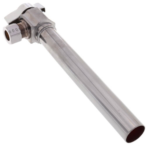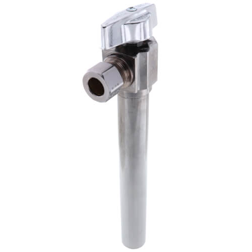 The BrassCraft KTCS40BXC is a 1/2 inch nominal sweat x 3/8 inch O.D. compression angle supply stop valve. This valve features a ball handle for easy operation and chrome plating for added protection and durability. It is suitable for use in potable water systems and is designed to provide reliable service with a positive shut-off.