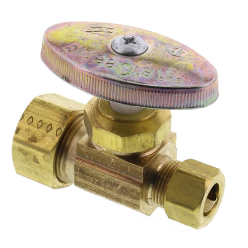The BrassCraft OCR14X R is a straight supply stop valve designed for water supply systems. This valve features a compression fitting on one end and an OD compression fitting on the other. With its knurled oval handle, it ensures easy operation and reliable performance. The body is constructed from brass for durability.