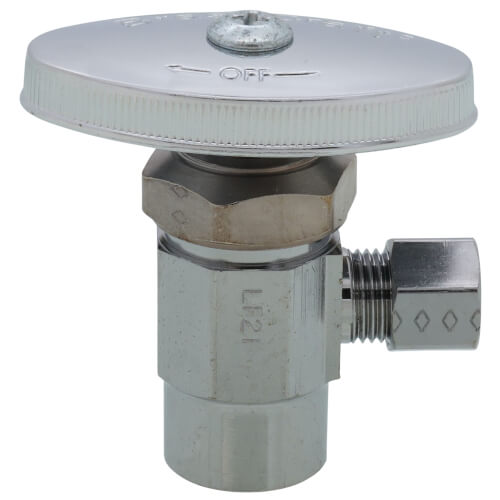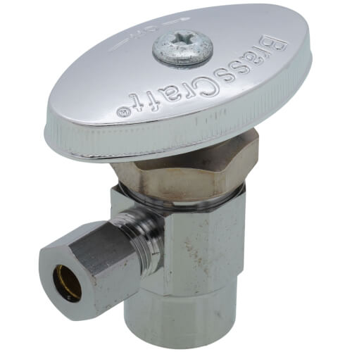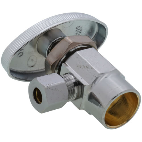 BrassCraft R09XC is a multi-turn angle stop valve with a nominal size of one-half inch sweat inlet and one-quarter inch OD compression outlet. This valve controls water flow to various household plumbing fixtures, including faucets, toilets, and dishwashers. It allows for easy water shut-off with just a few turns of the handle, facilitating maintenance without the need to turn off the main water supply.