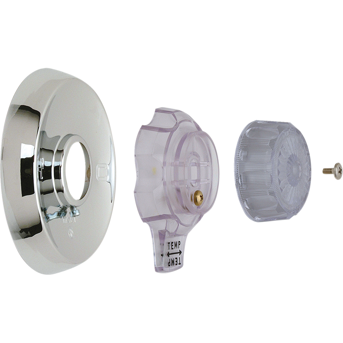 Includes: Volume Control Handle, Handle Screw, Temperature Control Handle, 4.5-inch Escutcheon