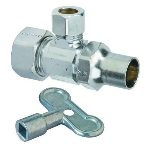 The BrassCraft SR17X C is a multi-turn angle stop valve designed for effective water flow control. This valve connects 1/2 inch FIP to 3/8 inch OD compression. It allows for isolation of water to plumbing fixtures including sinks and toilets. Its chrome-plated finish enhances durability and performance.