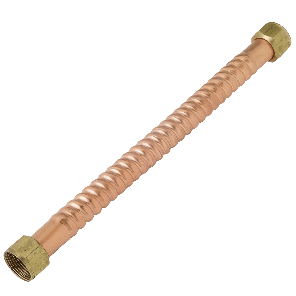 The BrassCraft WB00-18 is a copper-flex water heater connector designed for efficient connections. This connector measures three-fourths inches FIP on both ends and has an overall length of eighteen inches.