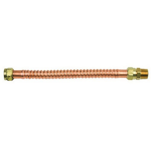 The BrassCraft Copper-Flex WB034-18N water heater connector is designed for efficient installation and superior performance. This 3/4 inch FIP x 3/4 inch female/male sweat connector is 18 inches long and features an integrated dielectric sleeve to prevent galvanic corrosion.