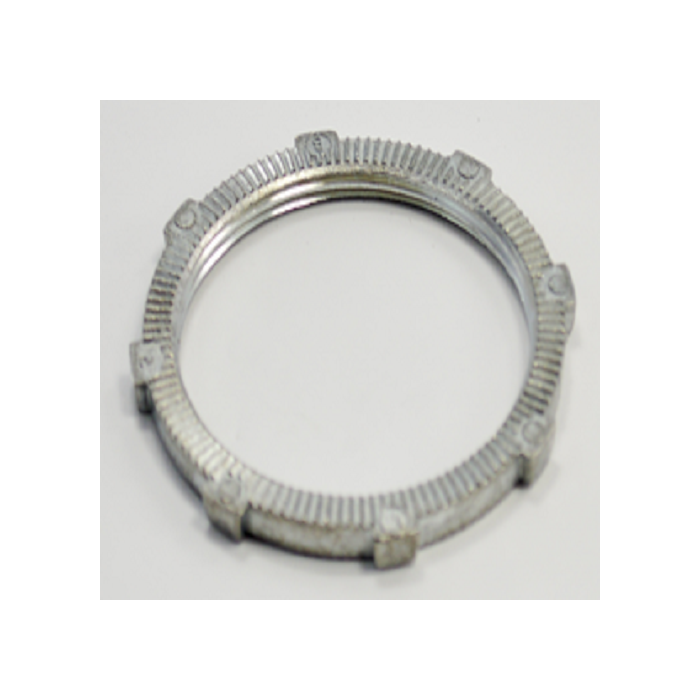 The Bridgeport 106-DC is a rigid zinc die cast locknut designed for use with rigid conduit. This locknut provides secure fastening to ensure that conduit installations are safe and compliant with electrical codes.