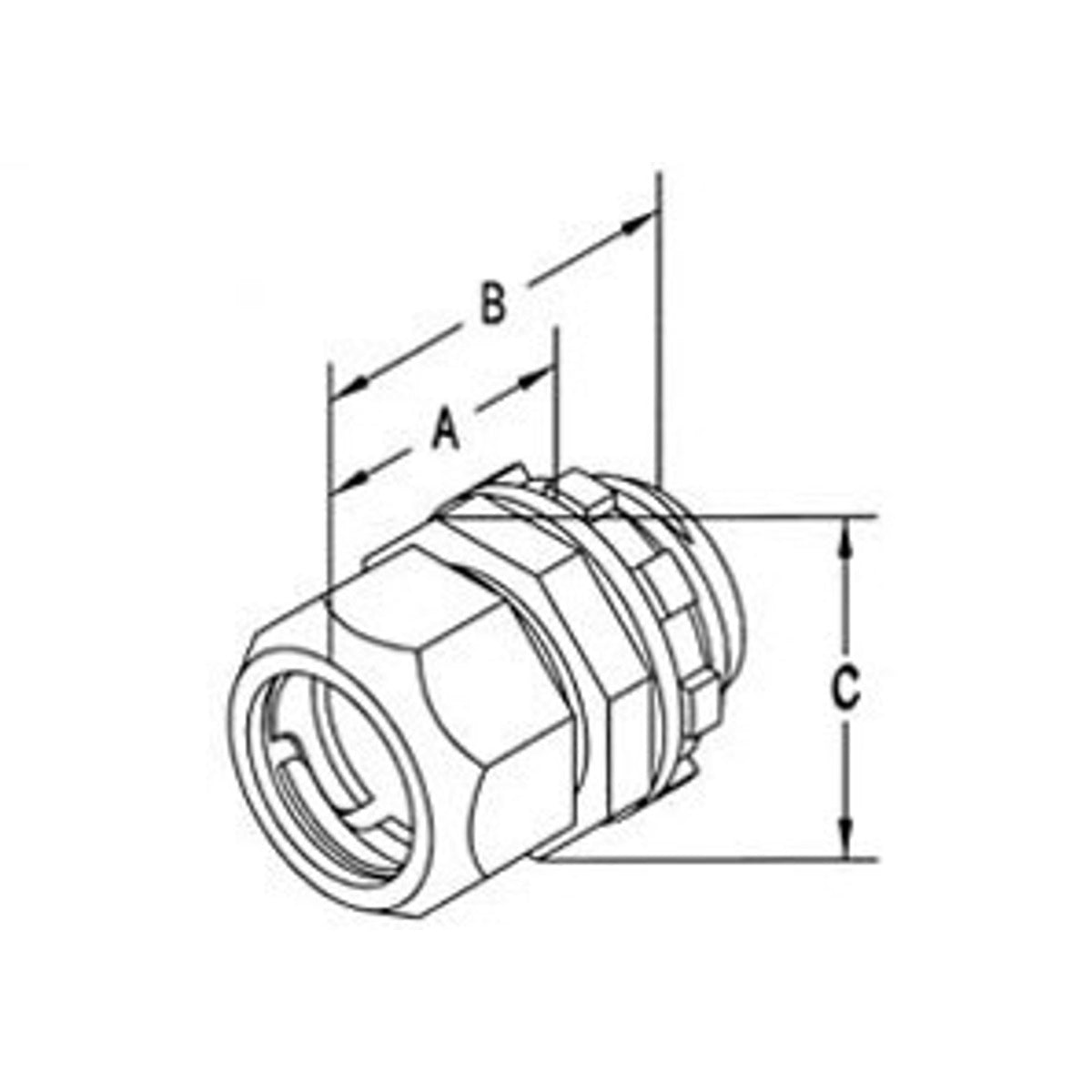 Application: Compression style connector with internal sealing ring and knockout gasket to create a raintight seal when connecting EMT to box or enclosure.