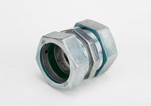 The Bridgeport 264-RT Raintight Compression Coupling is designed for EMT conduit applications. This coupling is constructed from die-cast zinc, providing durability and rust resistance. The internal sealing rings ensure a raintight connection, making it suitable for damp and wet locations.
