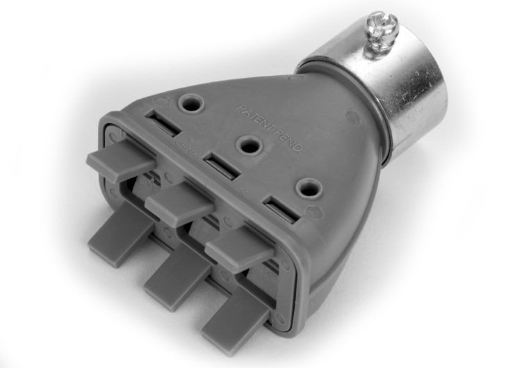 The Bridgeport 4357-NM is designed to transition multiple nonmetallic cables into three fourths inch EMT conduits. It utilizes an easy-to-use tab mechanism for installation or removal of cables. This fitting is suitable for prefabricating bundles of nonmetallic cables, significantly reducing installation time.