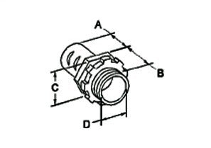 The Bridgeport 519-DC2 is a screw-in conduit connector designed for flexible metal conduit installations. This product connects the conduit to a box or enclosure, ensuring a secure and reliable fit. It is made from zinc die cast material and features a ball burnished finish.