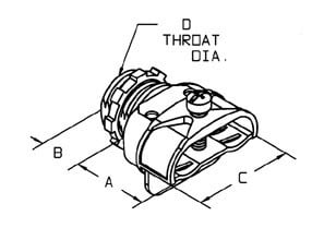 The Bridgeport 601-DC2 is a duplex die cast connector designed for use in electrical applications. It features a 1/2 inch knockout and accommodates cable openings ranging from three-eighths to five-eighths inches. This connector is suited for 14/2 to 10/3 AWG AC, MC, MCI-A, and NM cables, as well as three-eighths inch flexible metal conduit.