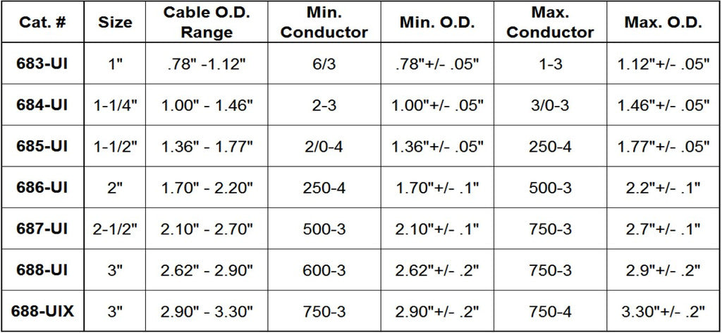 Special Features: Heavy duty steel construction supports 1.00-1.46 MC Feeder Cable