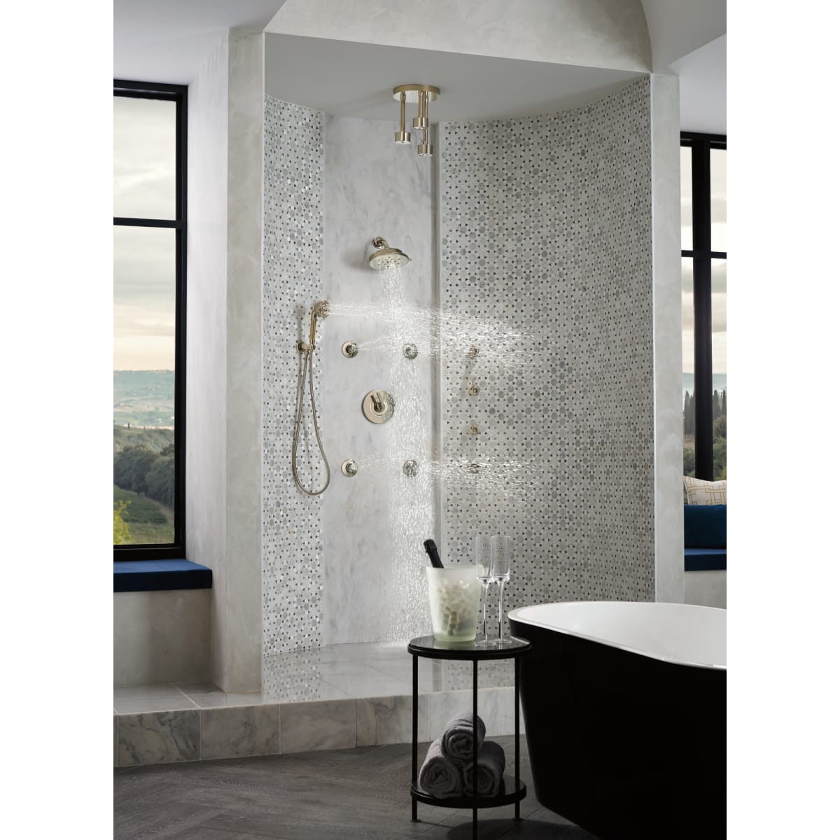 This Brizo shower arm and flange combination effectively optimizes water flow and enhances the functionality of any shower setup.
